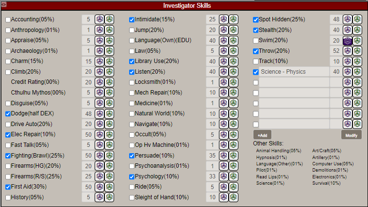 I love playing Pulp Cthulhu games and on the Miskatonic Playhouse Fringe Keeper Hedge updated a classic setting to Pulp. I can’t say the title just yet as it hasn’t been announced yet but it involves a tremendous ensnarement of the characters! With Pulp Cthulhu you play a heroic character and usually have a bucket load of skill points to spend – rumour has it the right combination of Pulp Architype and occupation can see over 600 skill points available to spend! BUT… When the dice want to screw you over, you can end up with a hero that falls very far from heroic! I rolled 40 for my Education (EDU) and 50 for Intelligence (INT) so only 260 points from attributes. Even the extra 100 skill points from my Pulp Architype didn’t help much! So rather than have a steely eyed mafia hit woman, I went with a slightly skilled Waitress who could punch like a freight train and could drink you under the table – oh and had a rough idea about the principles of Physics. The character was great fun to play as you may as well bring spirit to the game if your character doesn’t have much skill! The Waitress explained her father ran away from home when she was little. Mother said he went to the stars in a rocket ship so my character was going to invent her own space ship to to go get him back…